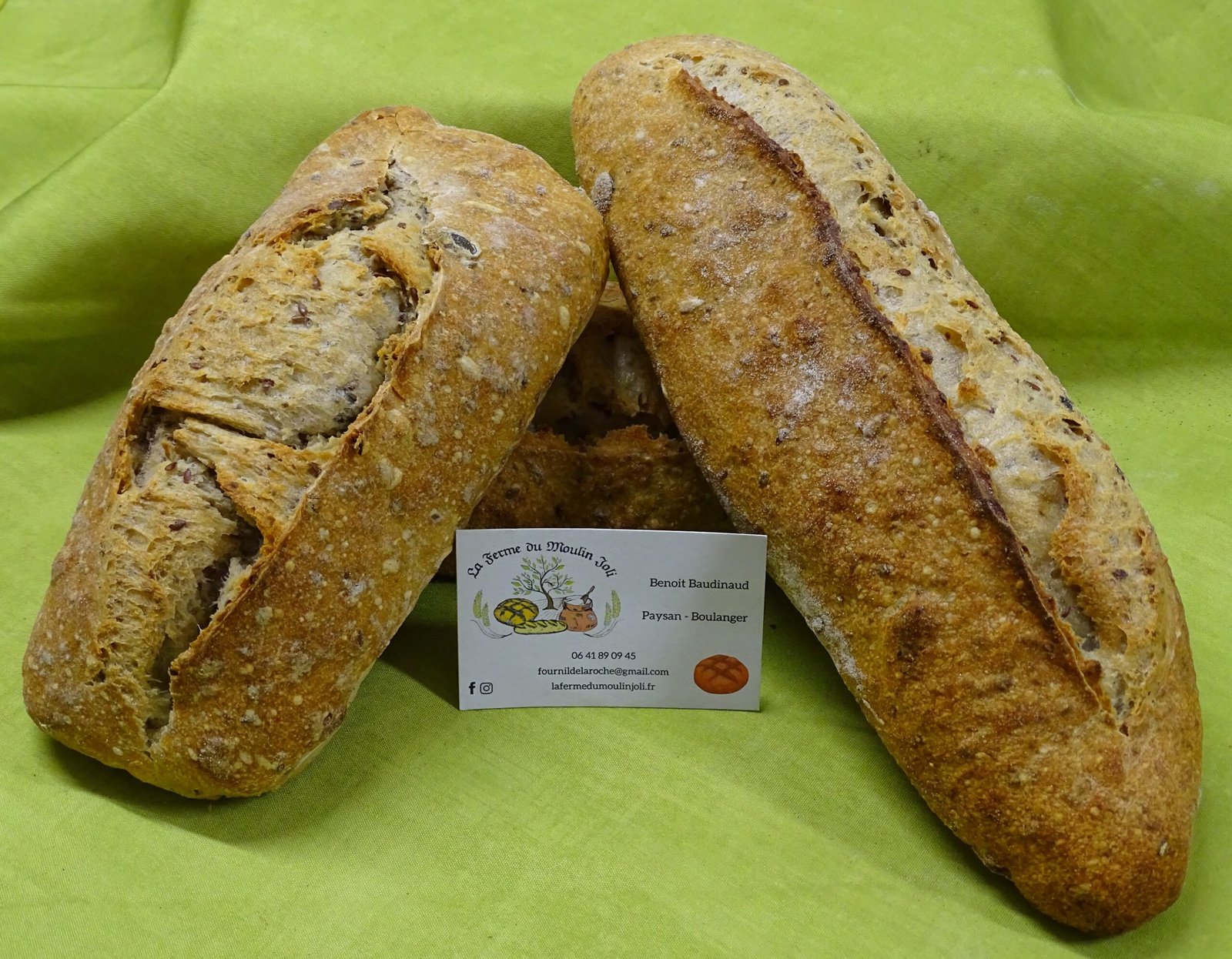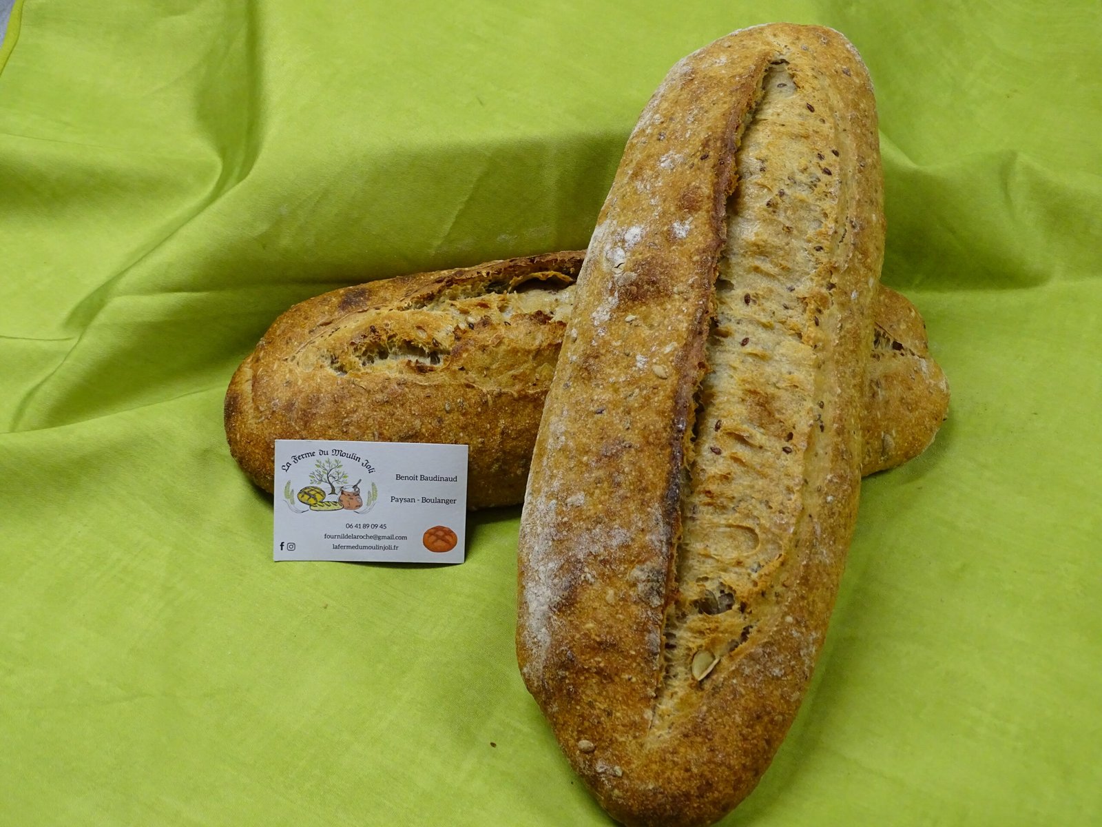 | Ingrédients | Farine de blé, eau, sel, levain, graines bios (lin , chia, tournesol, courge) |